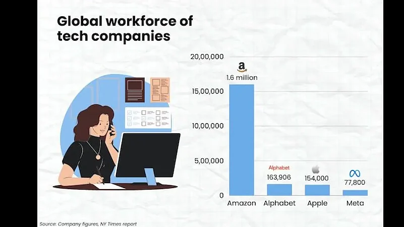 In the quarter ended March 2022, the number of employees in Alphabet went up to 163,906 from 139,995 in the same period last year. Amazon’s fourth quarter earnings report showed it had over 1.6 million employees by of the end of 2021, which is 24% growth from 2020. Apple’s employee strength for the fiscal year ended 30 September 2021 stood at 154,000, while a NY Times report pegged Meta’s global staff strength at 77,800. Tesla’s annual SEC filing showed that it employs 1 lakh people at the end of 2021. On-demand audio service, Spotify, employs about 8,230 people worldwide.