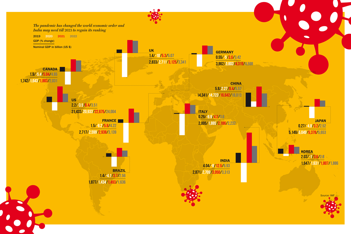 The pandemic has changed the world economic order and India may need till 2023 to regain its ranking