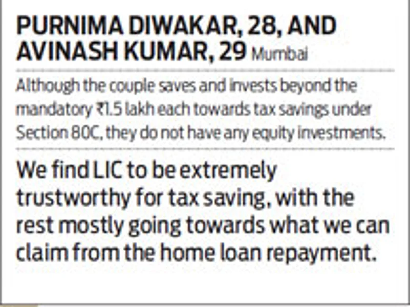 “The home loan repayment takes care of most of the tax savings other than the mandatory insurance and PF contribution,” quips 29-year-old Avinash Kumar, Purnima’s husband.