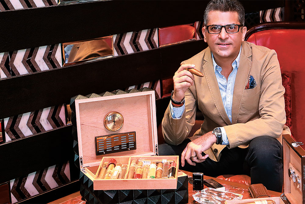 Cigars form the four Cs that exude sophistication — good cologne, chocolate, coffee and of course cigars. As for the latter, Ashish says, “Cigars are like pieces of art. They have a bespoke, handcrafted value to them which machine-rolled cigarettes can never deliver; the organic aroma of a good cigar fills up your senses, which the burning paper can never do; once your palate has acquired the taste and fallen under its spell — cigarettes will never catch your fancy.” Reflecting on how he first discovered his love, he says, “I was introduced to cigars by a Spanish friend way back at a conference in Singapore. I had never even touched a cigarette in my life, but a cigar had a certain appeal that continues to hold my fascination.” And what makes for a true connoisseur? “A true connoisseur for me, is someone who has taste but is also educated on his acquisitions,” he says. “They indulge in their passion, by reading about them, talking about them, and sharing their experiences with fellow smokers and educating beginners.”