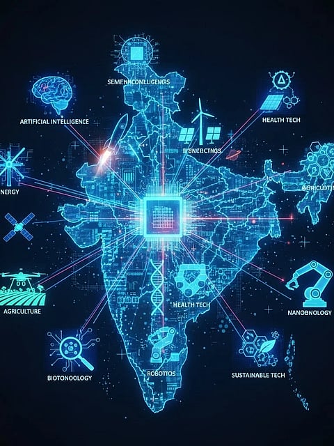 ESTIC 2025 discussions span 11 themes including Artificial Intelligence, Energy, Quantum Technology, Space Science, Semiconductor Manufacturing, Blue Economy, and Advanced Materials, defining India’s research priorities for the decade.