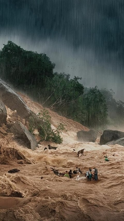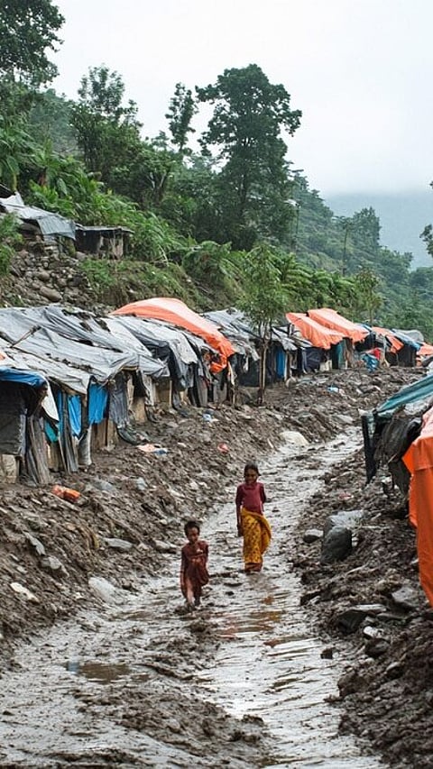 Heavy rains caused a landslide in Chhaten and Mangan districts in Sikkim, which also struck a military camp and killed three soldiers—Havaldar Lakhwinder Singh, Lance Naik Munish Thakur, and a porter, Abhishek Lakhada. Rescue operations continue for nine missing personnel despite difficult conditions.