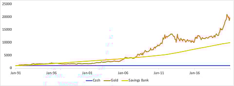 Gold is – and always will be – one of the safest stores of wealth. How do you store your liquid wealth? Cash, savings accounts, or gold? As Indians, we know the purchasing power of the Indian rupee has been declining over time. We analyzed the last 50 years of data and find that the rupee has lost over 95 per cent of its value while savings in bank deposits barely kept up with inflation. For example, in the last 50 years, the minimum support price of wheat has grown from Rs 70 per quintal in 1970 to Rs 1,925 for the current crop cycle. Gold has proven itself to be one of the best ways to insure against long-term inflation and the decline in value of the rupee relative to international currencies. Over very long periods, including the 50 years going back to 1971, the rupee has depreciated by over 11 per cent annually relative to gold. Put another way, if you invested Rs 190 for ten grams of gold 50 years ago, that ten grams would be worth almost Rs 50,000 now. That is a pretty good return on your investment!