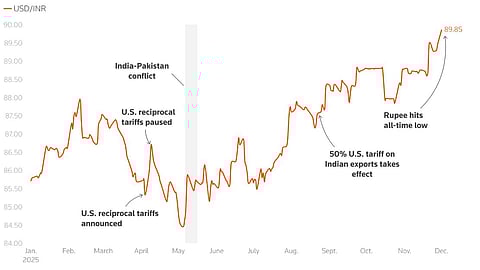 The Indian rupee is the worst-performing Asian currency in 2025, falling to a record low of 89.95 per dollar amid Trump’s tariff shocks, foreign outflows, and uncertainty around the India–US trade deal.