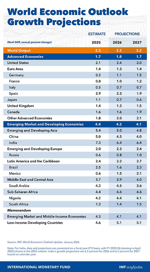 The IMF expects the global economy to grow by 3.1% in 2026, 0.2 percentage points lower than its January forecast, assuming the West Asia conflict remains limited and disruptions ease by mid-2026.
