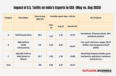 India’s exports to US dropped 22.2% May–Aug, falling to $6.9bn.
