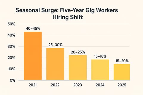 Festive gig hiring growth has slowed from 45% YoY in 2021 to an estimated 15–20% in 2025