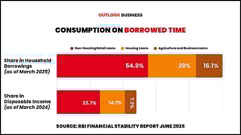 Another layer of concern is that both the government and corporate sector are deleveraging at the same time. Public debt has eased from its pandemic peak of 88% of GDP to 82% by December 2024, while corporate debt has slid from 66% in 2017 to around 50% now. Where the government’s fiscal consolidation has been rewarded with a long-overdue credit rating upgrade from S&P, a global credit ratings agency, after 18 years, the simultaneous pullback in corporate debt is more troubling. Economists warn that such a cycle could further weigh on household incomes especially when families themselves are carrying higher loan burdens. The deleveraging, partly a fallout of the 2019 corporate tax cuts, is now seen as a drag on growth explaining why the Ministry of Finance is pressing India companies to pay and hire more.