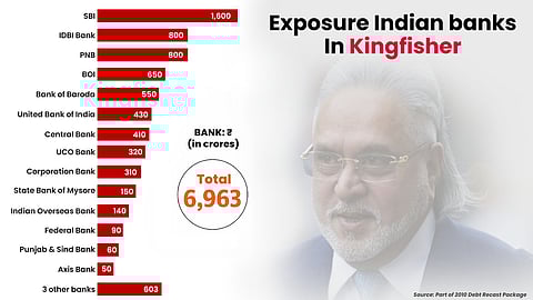It mentions that in 2013, Indian banks led by SBI filed a case to recover ₹6,203 crore from Vijay Mallya and Kingfisher Airlines. Mallya had assured the court he wouldn't move assets, and the Karnataka High Court barred him from transferring any property.