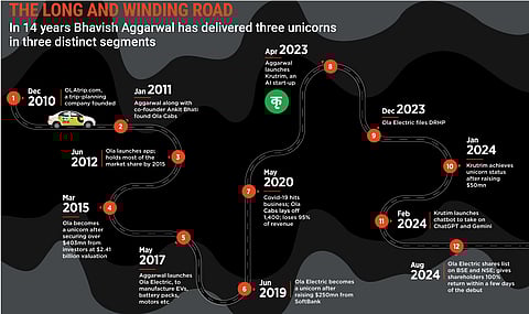Cocky. Confident. Brash. Brilliant. Bhavish Aggarwal is all of these. And he is more. At first glance he is a man on the cusp of midlife. His pitch-black hair seems to have been brushed back aggressively, revealing a growing forehead untouched by frown lines. He loves dogs. They are the only beings with unbridled access to him, in his office, in meetings or at home.