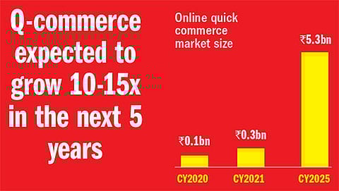 Investors, however, seem upbeat about quick commerce in India. While Reliance Retail led a $240 million funding round in quick commerce firm Dunzo, owning a 25.8% stake in the Bengaluru-based start-up, Zepto, one of the biggest disrupters in the segment, managed to raise $160 million within six months of inception, doubling its valuation to $570 million. Even Swiggy recently made a $700 million investment in its quick commerce vertical Instamart, and Zomato—already an investor in Blinkit—is expected to pump in a further $500 million, thus intensifying the battle between the two food-delivery giants. In fact, according to a report by consulting firm Redseer, India’s quick commerce sector is expected to grow 10-15 times in the next five years to become a $5-billion market by 2025.