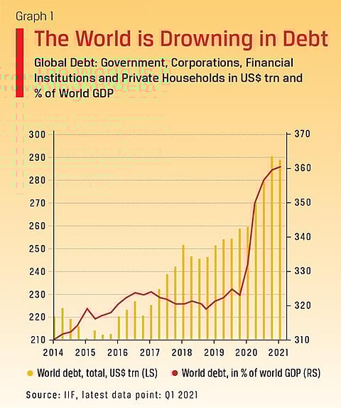 “May you live in interesting times” goes an old Chinese curse and the current state of world economy could be a reality of that curse. On one hand the world is swarming in debt, almost touching the $300 trillion mark (see Graph 1), on the other hand the interest rates are now at its lowest ever, in the entire economic history of civilization. If this situation did not sound bizarre, top it up with an economic conundrum, a negative yield on bonds.