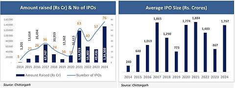 Notably, a record 143 DRHPs were filed with SEBI in 2024, compared to 84 in 2023 and 89 in 2022. This record-breaking surge in IPO draft filings comes on the back of strong market performance indicating that strong fundraising will continue through IPO in upcoming year, the report added.