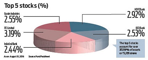 The equity portfolio is made up of 59 stocks, which are predominantly large-caps, while the allocation to mid-caps is not as profound at under 20 per cent. Spreading the investments across several stocks helps mitigate risks, which is reflected in its performance.