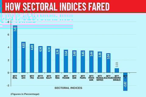The Indian equity markets managed to break their five-week losing streak amid heightened volatility for the week ended May 20. The S&P BSE Sensex rose 2.9 per cent while the broader Nifty 50 index advanced 3 per cent. During the week, benchmarks witnessed wild swings on Thursday and Friday. On Thursday indexes fell 2.5 per cent owing to the weekly expiry of index futures and options contracts but staged a strong bounce back on Friday.