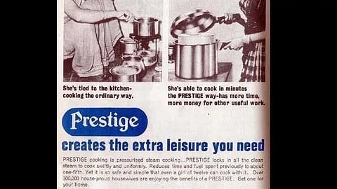 It's the 90s. A newly married couple visits a kitchenware shop, and when asked what they would like to buy, the young bride mouths the words 'pressure cooker' to her husband instead of the shopkeeper, like any 'cultured' Indian homemaker would do. While enumerating the merits of a Prestige cooker, the merchant smugly hints that it is best suited for a husband who loves his wife, summing up with the catchphrase – Jo Biwi Se Karein Pyaar, Woh Prestige Se Kaise Inkaar.