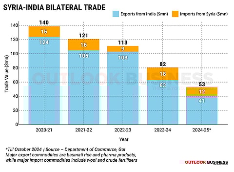 The collapse of Assad’s regime also raises uncertainty for India’s infrastructure projects in Syria, including the Tishreen Power Plant and Block 24 oil exploration. Bilateral trade has been declining in recent years.