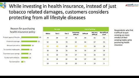 A huge 83 per cent respondents had also disclosed their smoking habits while purchasing health insurance policies, the survey revealed. Findings further revealed that 81 per cent of the respondents were willing to pay an additional amount of 20 per cent on premium because of their smoking habits, signifying the difficulty they found in quitting the habit.