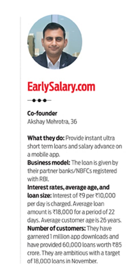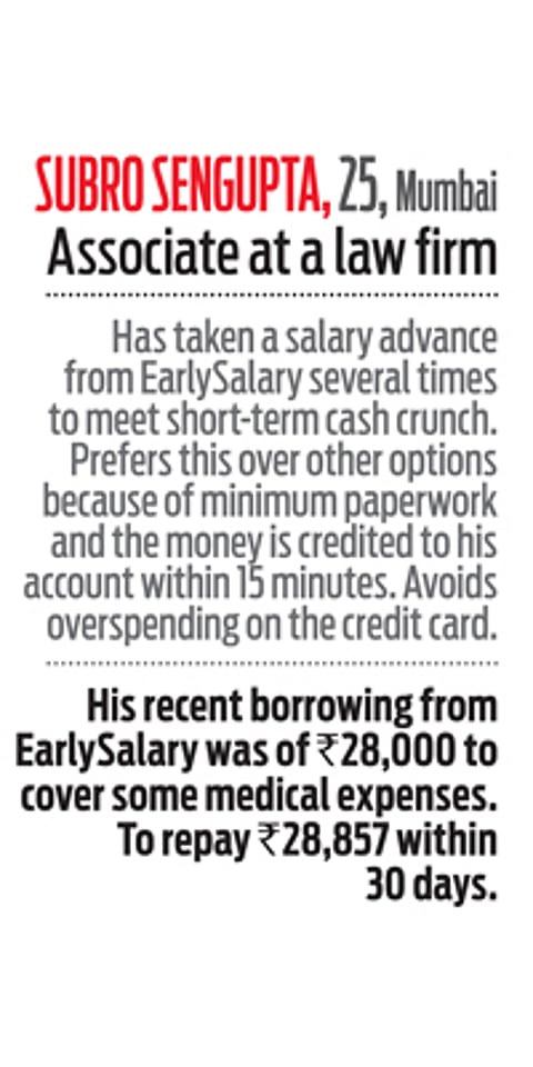 Fintech companies are also seeing an opportunity because banks don’t cater to this need. A salary advance loan is a quick solution to help avoid the embarrassment of asking someone for money. It’s a new and hassle-free way to get your salary just when you need it, that too within minutes. “Banks would require you to have a strong CIBIL score to be able to borrow. Moreover, banks will provide you with personal loan schemes for around `3 lakh for a time period of 36 months rather than short-term loans like `20,000 for 10 days till the next salary day,” says Akshay Mehrotra, co-founder and CEO, EarlySalary.com, a fintech company, which focuses on providing salary advance options.