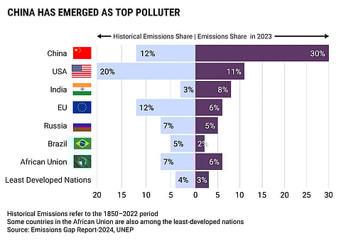 However, developing nations reject this proposal, emphasising that developed nations, being historically the largest emitters, should bear the responsibility.