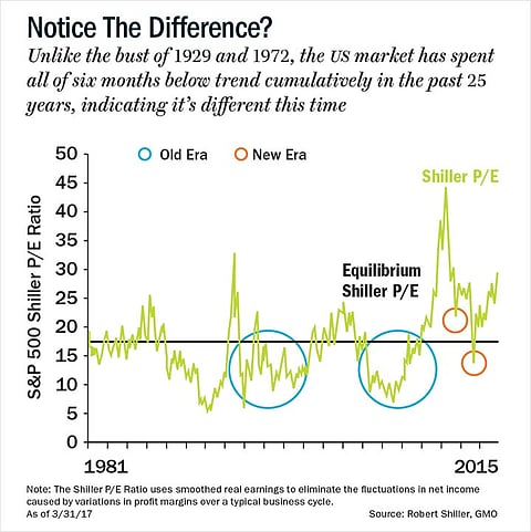 Back in the ‘70s, most of the interest rate was just inflation pass through, but now, we have the real rate, which has gone to zero. You can hardly work out what the real rate was back then, because inflation was bouncing around upto 12% in 1981-82. We know that the inflation component really kills the P/E; what is much harder to estimate is the impact of real rates. The real rate component typically doesn’t matter, but it does today because we have very modest and very stable inflation, so the real rate is much more visible. Everyone can see it’s about zero or less for a T-bill. And that puts its own pressure on investors — do you really want to put your money at -1 in the piggy bank or do you want to take a risk and buy an overpriced, or what appears to be an overpriced stock?