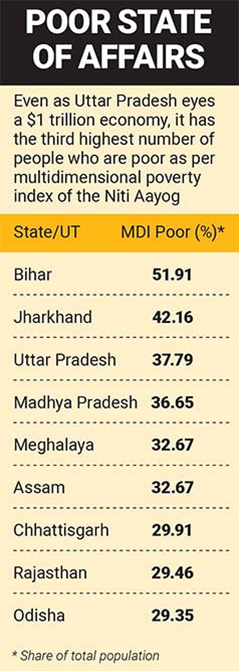 While experts do not rule it out, it will be a significant challenge even for the most formidable of policymakers to surmount. For example, as per the Niti Aayog’s multidimensional poverty index (MPI) baseline report based on the National Family Health Survey–4 (2015-16), Uttar Pradesh is among the three most poor states of India. With 37.79% of its population being multidimensionally poor, Uttar Pradesh is just behind Jharkhand (42.16%) and Bihar (51.91%).
