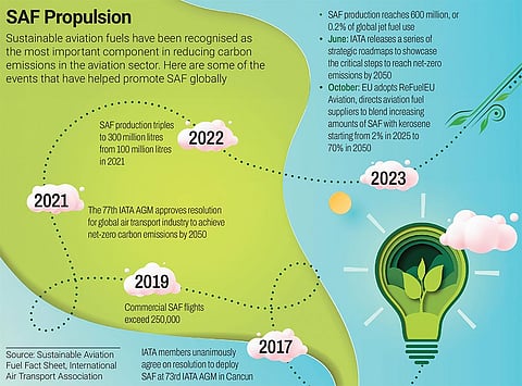 The global aviation sector reached a major milestone in climate action in November 2023 when Virgin Atlantic’s Boeing 787 aircraft successfully completed a flight from London to New York entirely on 100% sustainable aviation fuel (SAF). Powered by Rolls Royce Trent 1000 engines, the aircraft used 60 tonnes of SAF for testing and the flight, proving that sustainable fuels could be just the answer to the sector’s dilemma due to rising emissions.