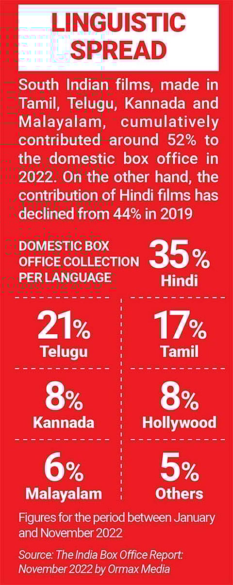 The year was 2015 when Telugu actor Prabhas, little known beyond southern states, suddenly became a household name across the country as S.S. Rajamouli-directed Baahubali: The Beginning broke records. Two years later, its sequel Baahubali: The Conclusion surpassed the previous one’s performance. Together, the two films, released in multiple languages, raked in more than Rs 2,000 crore. The Baahubali franchise announced the arrival of south Indian films on the national screen; the film-loving Indian realised that an entertainer in any language was still as entertaining, and warmly received them. The humongous success of RRR and K.G.F Chapter 2, released in multiple languages in 2022, dispelled all remaining doubts about the pan-India appeal of dubbed south Indian movies. Both collected more than Rs 1,000 crore each at the box office.