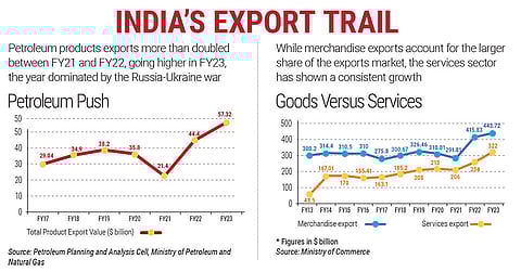 While the overall export market is showing signs of a slowdown, India’s petroleum export to the European Union has increased as the latter has largely stopped buying petroleum products from Russia. The value of European imports from Russia was over €158 billion in 2021, out of which €99 billion was for oil and gas.