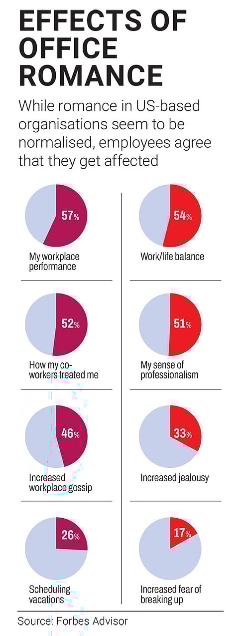 On a rainy evening after work, a young woman in her 20s took a lift back to her rented apartment in Bengaluru with her team leader. He dropped her off and headed home. Somewhere over coffee and PowerPoint presentations, they started dating and fell in love. They kept it a secret because they were not sure how others in the team would react but, as in most romances, word got out.