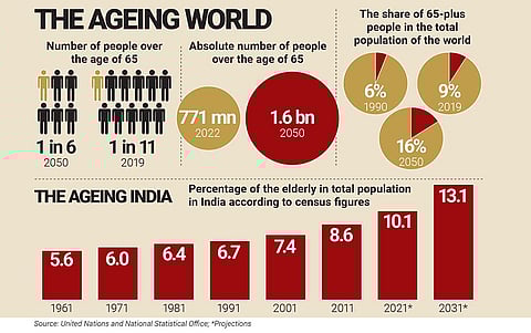 More than 27 million elderly were added to the population between 2001 and 2011. There were nearly 138 million elderly persons in India in 2021—67 million males and 71 million females—said the report. The number is projected to touch 193.8 million by 2031.