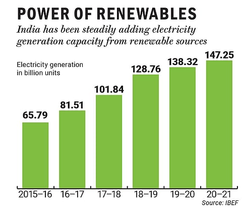 India wants to reach from under 160 GW of non-fossil energy capacity at present to 500 GW in the next eight years, something it has committed to the world as part of its responsibility to reduce greenhouse gases emission. It wants to reduce the projected carbon emissions by one billion tonnes, which will cut down the economy’s carbon intensity by 45% on a baseline of 2005. It will also help the country achieve its net-zero emissions target for 2070.