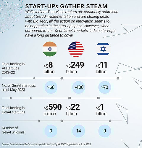 On record, most IT company representatives show enthusiasm about the use and business cases of GenAI for their global clients. However, as one digs deeper, they tend to betray a sense of unease at its potential to impact their revenue and Big Tech and start-ups encroaching upon their territory.