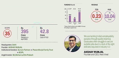 Hero Vired, an edtech start-up under the Hero Group, was founded in 2021 with the aim to make education inclusive by reaching learners in Tier II and Tier III cities. The start-up aims to create a learning ecosystem that equips individuals for future challenges through quality learning. It claims to be committed to providing comprehensive professional development, making learners industry-ready for emerging roles and professions.