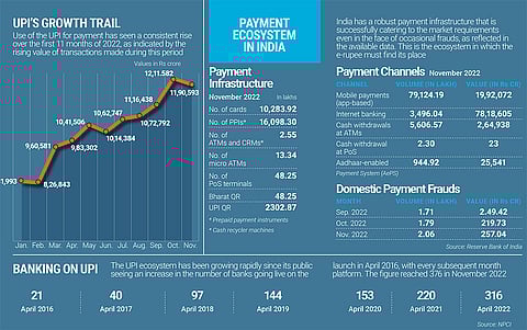 Apart from the robust concept and technology, the success of the UPI system rides largely on the government’s 2019 decision to remove the merchant discount rate (MDR), bringing the transaction fee to zero. Union finance minister Nirmala Sitharaman announced that banks—the infrastructure providers—and service provider apps would not charge any fee from users, including commercial players, for transactions via the UPI. However, this has negatively impacted the payment ecosystem, a committee headed by D.B. Pathak, professor emeritus at the Indian Institute of Technology, Bombay, observed, recommending “a lower controlled interchange instead of zero MDR”.