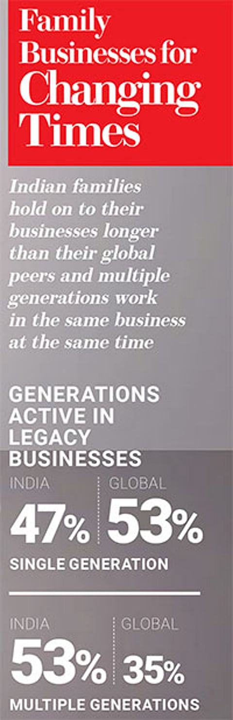 A possible reason for the continued appeal and success of family businesses in India could be that multiple generations work together in India due to cultural reasons, while globally the trend is that when the young take charge, the older generation exits.