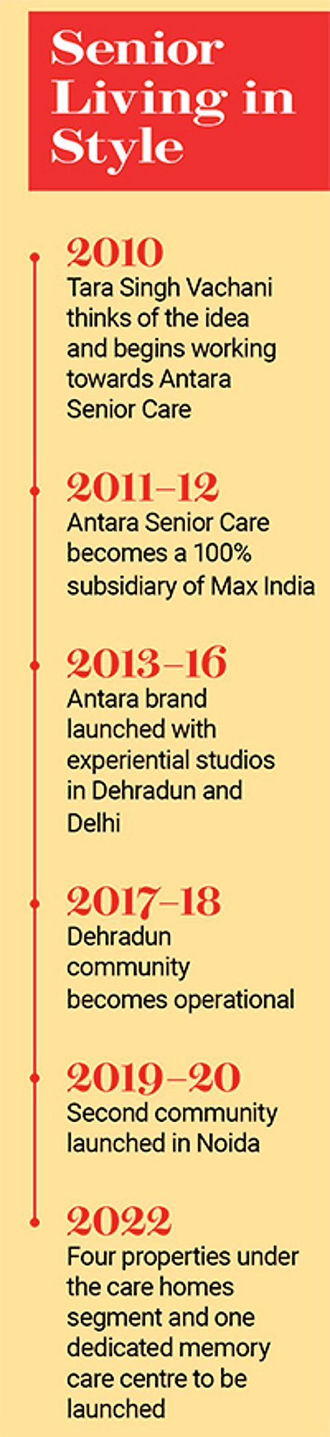 Tara Singh Vachani, Founder & Executive Chairperson, Antara Senior Care and Vice-Chairperson, Max India was in her 20s when she set up Antara Senior Care (earlier Antara Living) in 2010. The youngest daughter of Analjit Singh, the founder and chairman of Max Group, wanted to do something of her own and veer away from her father’s well-paved path.