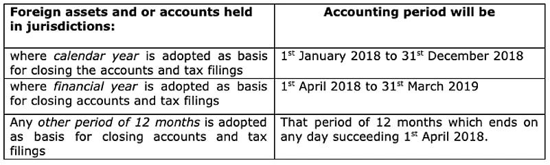 The taxpayer will hope that the above reporting, pursuant to period difference, does not create any practical hardships. For instance, while overseas income is taxed with reference to fiscal year April to March, the underlying assets could be reported for the accounting period mentioned above.