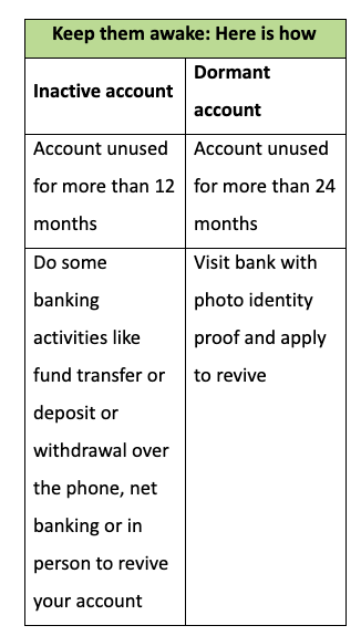 As per the RBI circular issued in 2014, with regard to this, no activation charges for inactive or dormant account. Banks cannot charge minimum balance penalty either on dormant or inoperative account. In order to avoid such situations and run to the branch for reactivation, carry out a transaction once in a while in all your bank accounts. This will ensure that your account remains active and reduces the risk of fraud.