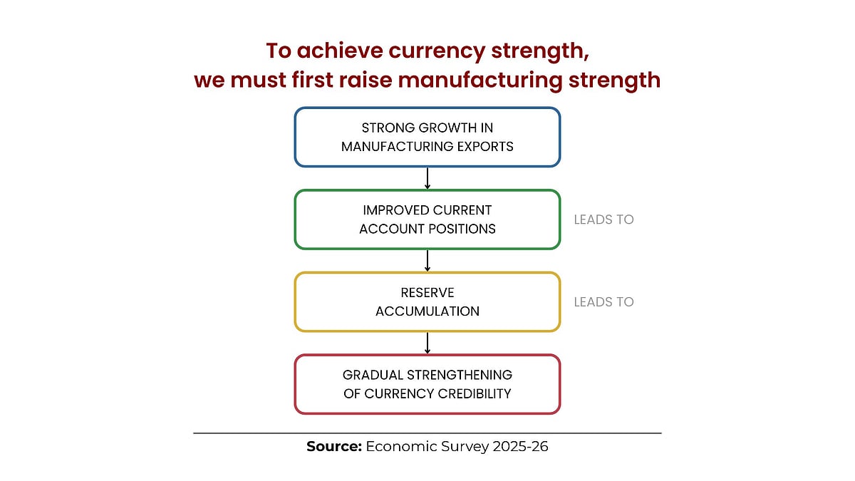Taken together, the assessment suggests that policymakers, including the government and the Reserve Bank of India, are not particularly alarmed about the rupee’s valuation. As Chief Economic Advisor V. Anantha Nageswaran said, the government is “not losing sleep over the declining rupee.”