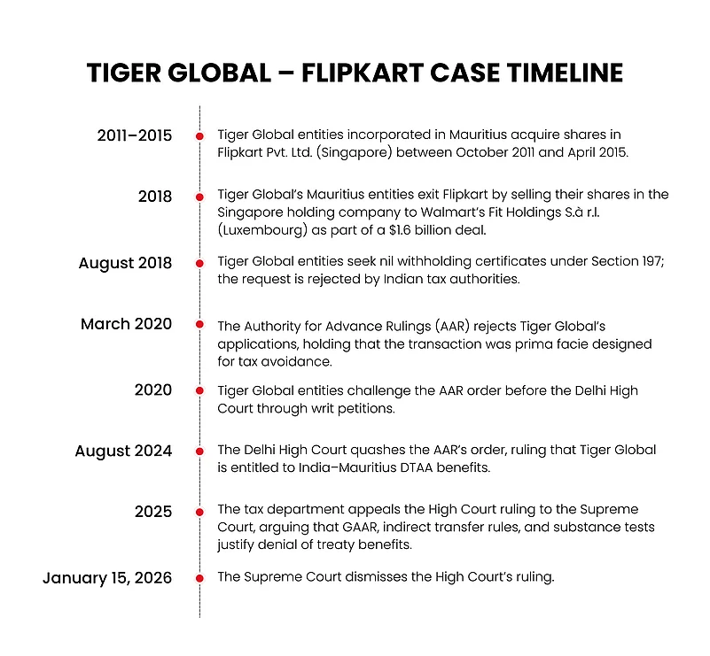 Away from Indian shores, Tiger Global, a US-based private equity firm, was quietly building up a 22% stake in the Indian ecommerce company. As was common at the time, it chose Mauritius as the location of its funds as India had a Double Taxation Avoidance Agreement or DTAA with the island nation. International companies typically routed their Indian investments through entities based in Mauritius to ensure that they would not have to pay tax on their profit when they exited their investments later.