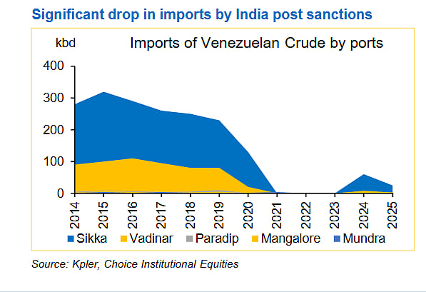 Venezuela has long been a key crude supplier for India, with ONGC holding major investments that were hit by US sanctions in 2021.