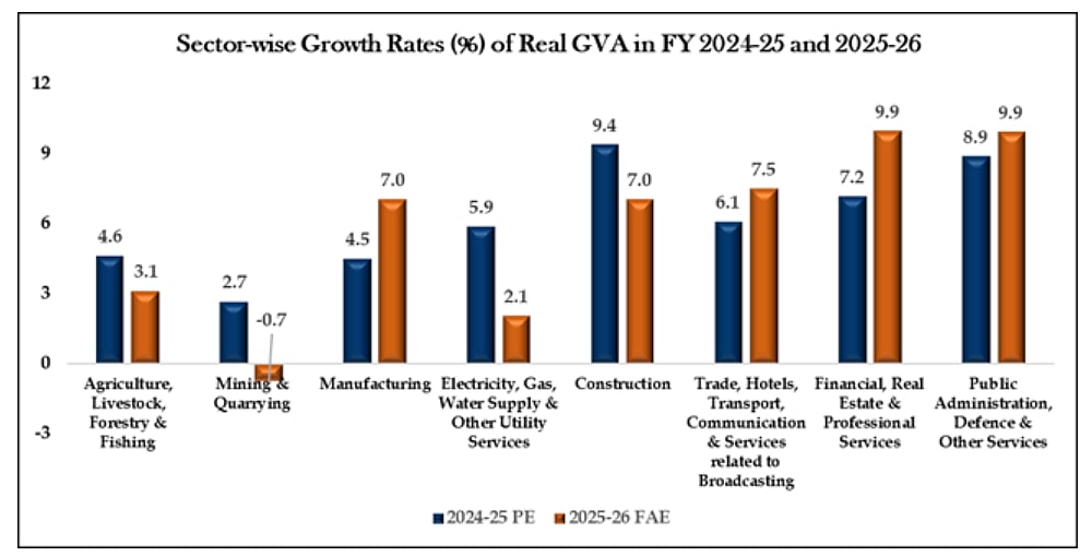 Real GVA growth is pegged at 7.3%, driven by nearly 10% expansion in key services segments such as finance, real estate and public administration.