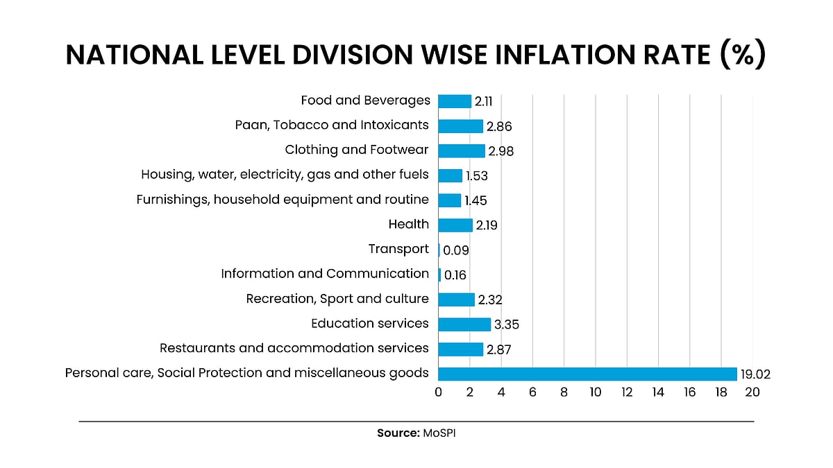 The weight of the paan, tobacco and intoxicants category has risen to 2.99% from 2.38% in the previous series, while clothing and footwear has declined sharply to 2.38% from 6.53%.