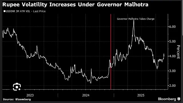 RBI’s shift toward a more hands-off intervention strategy under Governor Sanjay Malhotra has increased volatility.