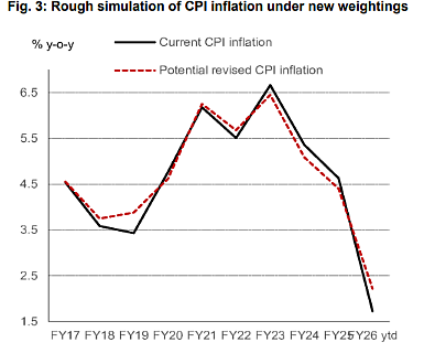 “If the new CPI series raises spot inflation, it could also lower the forward inflation trajectory, assuming the same momentum,” the report added.