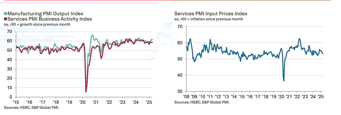 "New export orders gained momentum after taking a breather in March, accelerating at its fastest pace since July 2024. Margins improved as cost pressures eased and prices charged rose at a faster pace. Though firms remained optimistic about future growth, their confidence waned slightly," said Pranjul Bhandari, Chief India Economist at HSBC.
