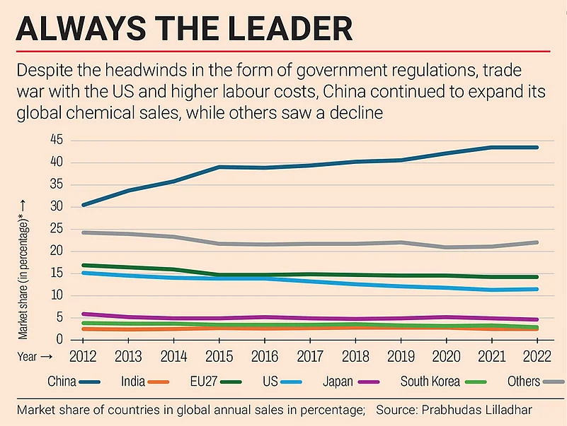 “In pyroxasulfone [a herbicide], where Indian players like PI Industries, Crop Science and Best Agro are present, China appears to have announced new capacities of 4,000 mtpa [million tonnes per annum] in 2023 alone. Global demand itself is of 3,500 mtpa... [A] similar story plays out in other chemicals too,” the report says. China has been accused of dumping chemicals in several countries, including India. Domestic companies in India are demanding anti-dumping investigation against imports from the neighbouring country.