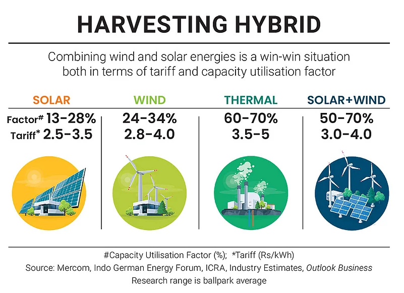 Industry estimates suggest that the CUF of hybrid plants can be higher than 50%. Adani Green’s hybrid plant in Jaisalmer has been designed to deliver a minimum CUF of 50%. Radiance Renewable’s Manikkan says that the CUF can go up to 70% in the case of hybrid plants. To put this in context, rating agency ICRA’s estimates suggest that the average capacity utilisation of thermal plants stood at 68% in 2023–24.