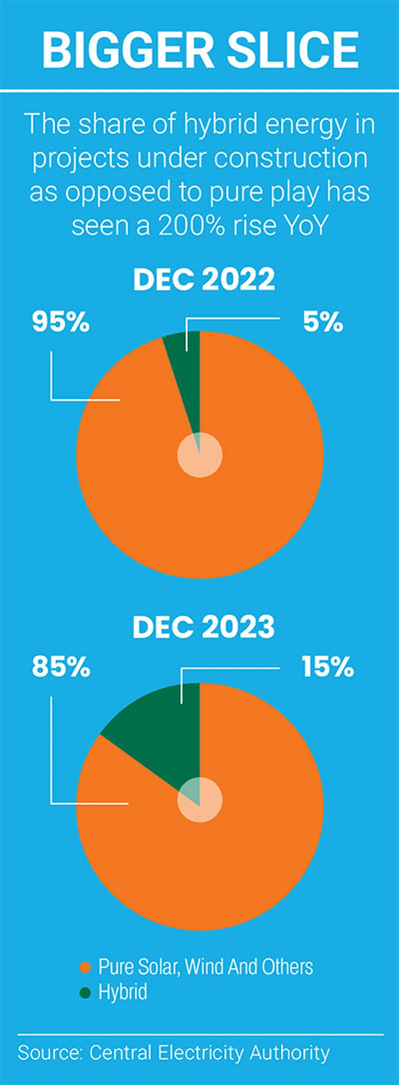 Manikkan S., executive director and chief executive officer at Radiance Renewables, a solar power producer, says that the hybridisation has become a theme as corporates have now become comfortable with the idea of more green power in their energy mix.